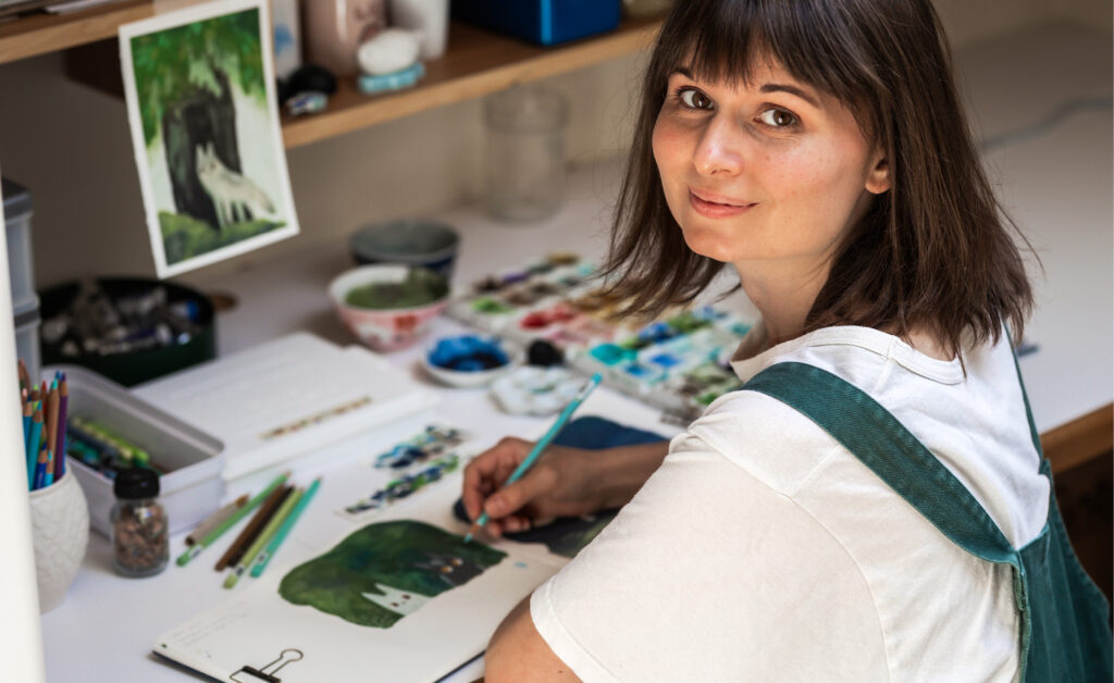 These digital drawings, once adjusted on the computer, became Tegan’s artistic blueprint. “I think of it as a digital paint-by-number plan from which I can put paint on the paper and know where the colours and the shadows and light will go. I like to use watercolour, gouache and coloured pencils.”