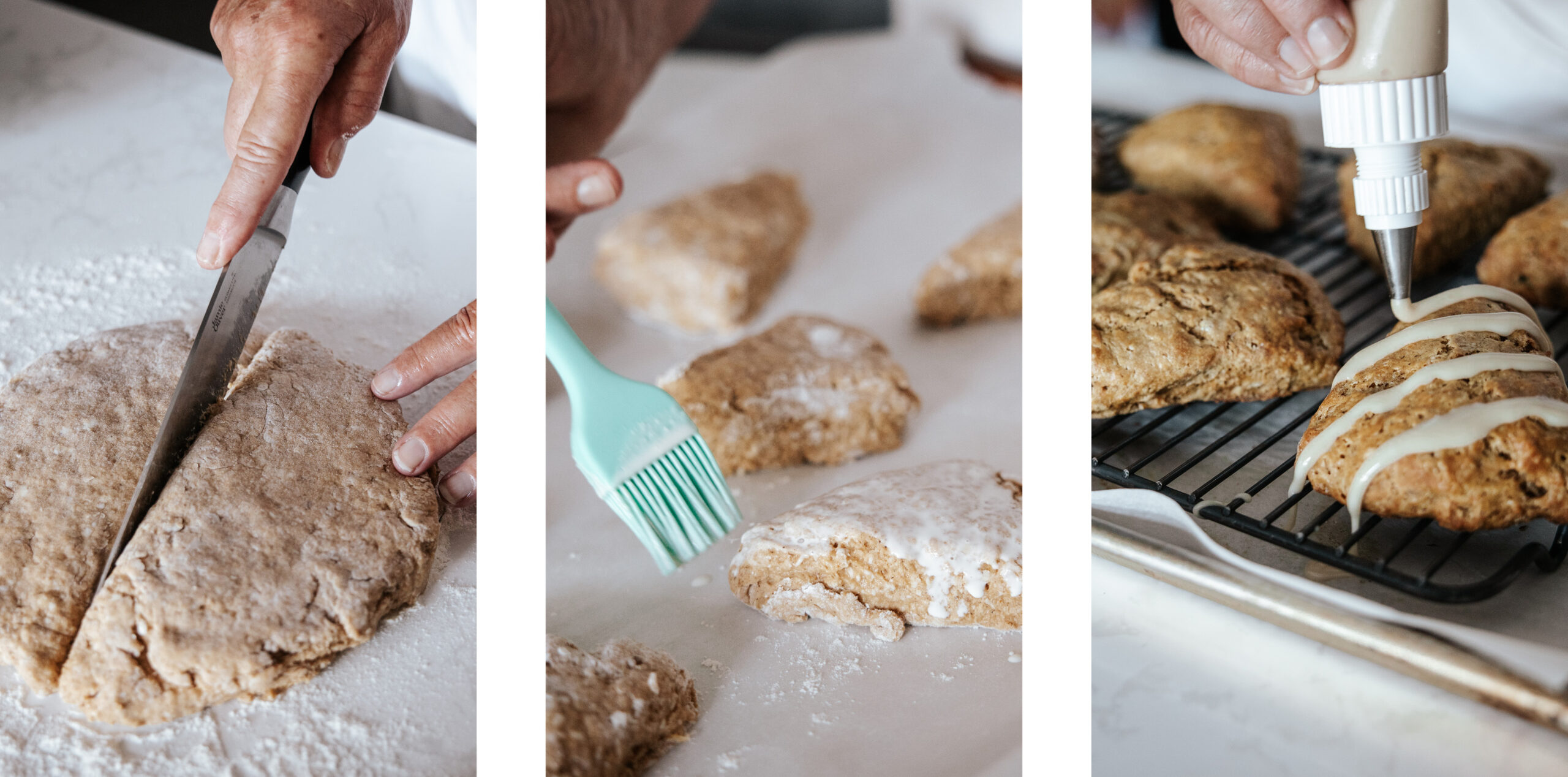 After removing scones from oven, let cool for a few minutes while making glaze.